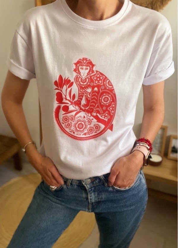 Reme de algodón premium con estampa central en color rojo. Talle único que abarca hasta talle L aproximadamente