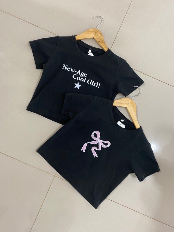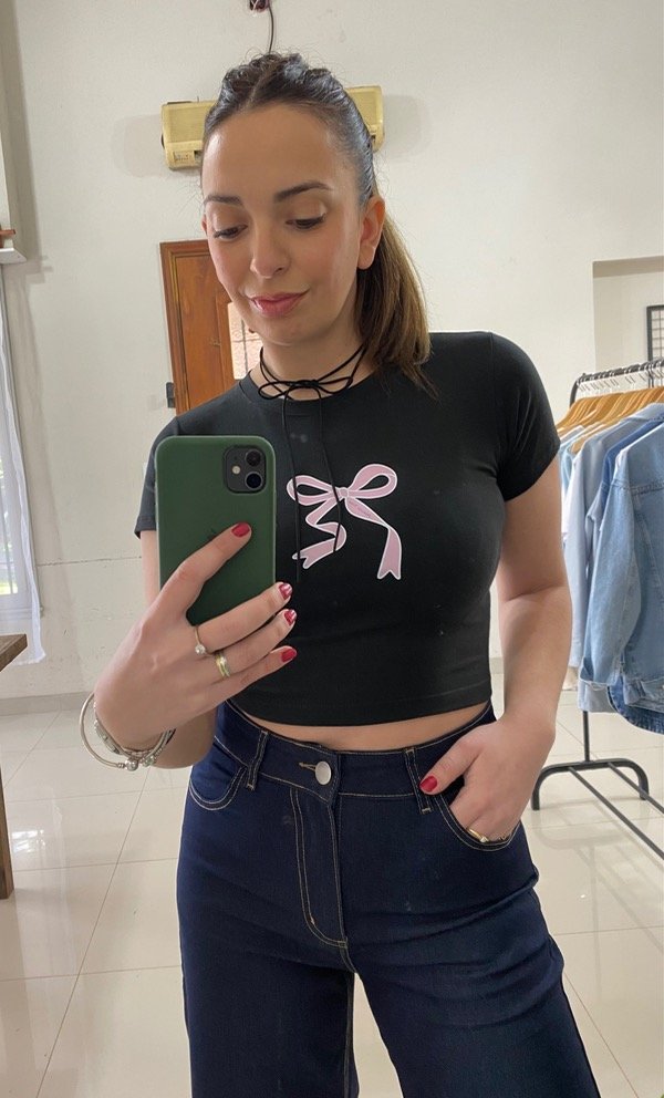 Reme estilo baby tee, cortas y al cuerpo, confeccionada en algodón con lycra. Talle único que va hasta talle M aprox.