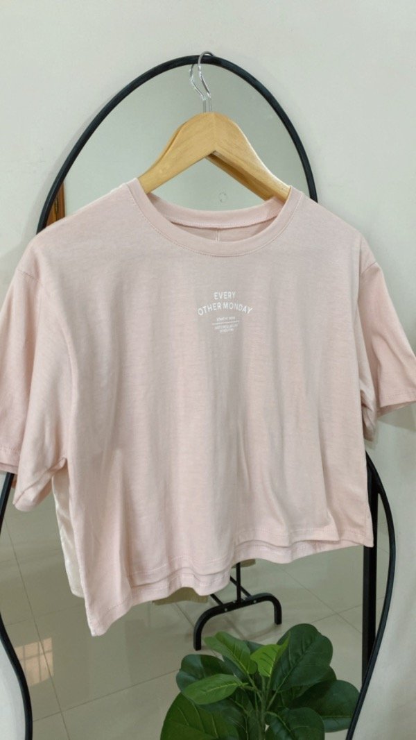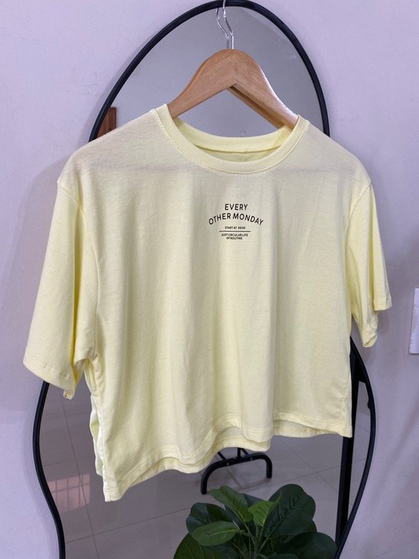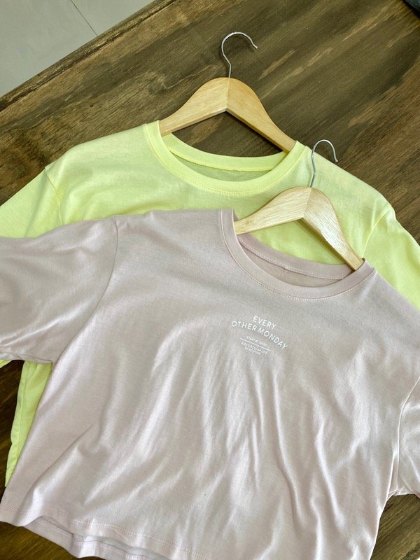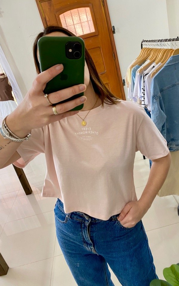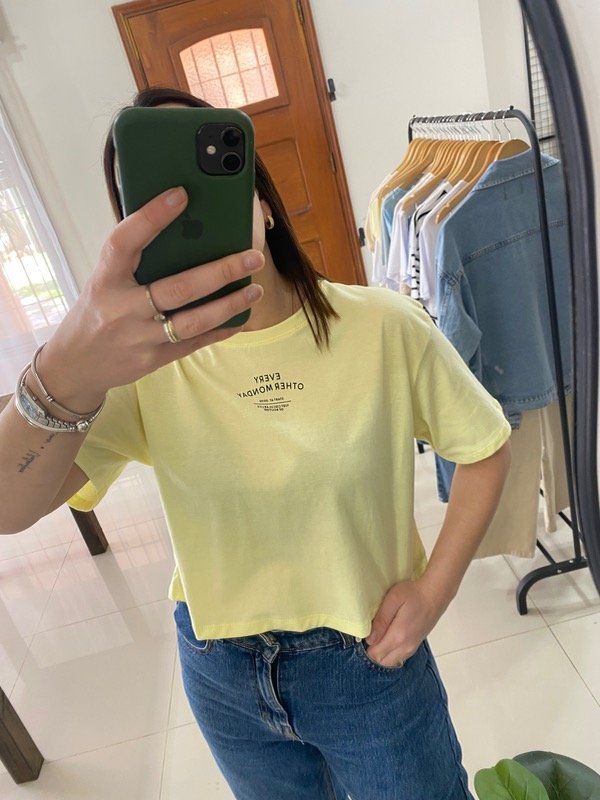 Remera de algodón estilo pupera, con inscripción en el frente.