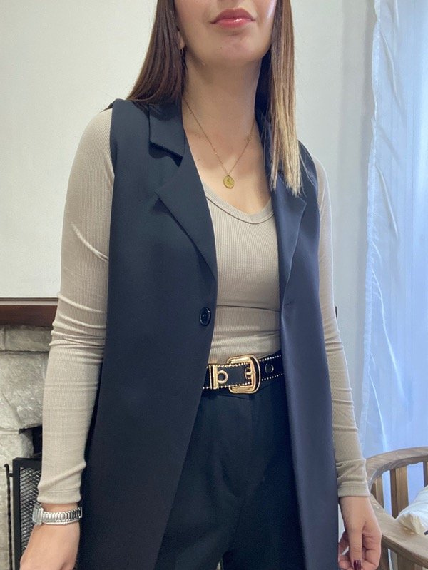 Chaleco sastrero, largo y con un botón delantero. Ideal para completar y elevar tus outfits. Talle único que Abarca Perfecto hasta talle XL